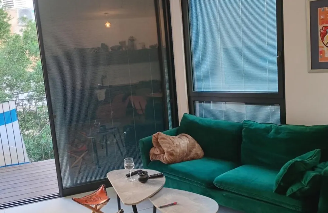 Luxurious Apartment By Dizengoff Square offers a balcony and a seating area, as well as comforts like air conditioning. The property features a bathroom with bathrobes and towels. Furthermore, a separate toilet, a shower, and a washing machine is available.